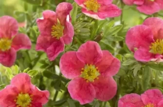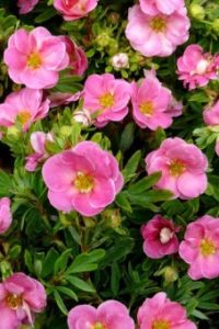 Фото Лапчатка кустарниковая Данни Бой Описание сорта Лапчатка кустарниковая Данни Бой Цветки малиново-розовые.
