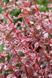 Фото Барбарис Тунберга Harlequin Описание сорта Барбарис Тунберга Harlequin Невысокий кустарник около