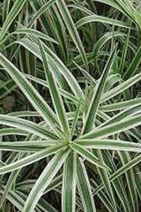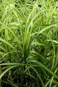 Фото Осока пальмолистная Variegata Описание сорта Осока пальмолистная Variegata Зеленая листва с ярко-белой