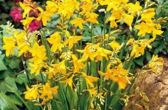 Фото Крокосмия George Davison Описание сорта Крокосмия George Davison Крокосмия George Davidson сочетает