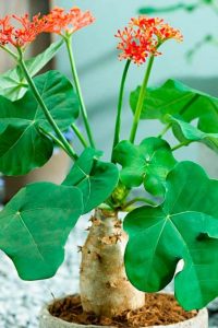 Ятрофа (Jatropha) имеет прямое отношение к семейству молочайные (Euphorbiaceae). Такой род представлен