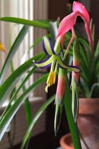 Вечнозеленое декоративноцветущее растение бильбергия (Billbergia) является представителем семейства Бромелиевые.