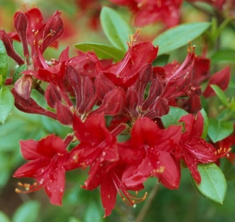 Азалия Crosswater Red- достигает 180 см высоты и 120 см ширины. Цветение конец мая начало июня. Цветки красные, крупные, в форме колокольчика или чаши, с длинными, изогнутыми тычинками. Листья при распускании бронзовые, затем темно-зеленые, осенью сперва малиново-красные, затем оранжево-желтые.