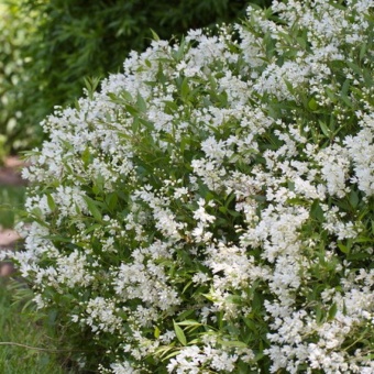 Исключительно красивый, компактный кустарник высотой 40-50 см, шириной 80-100 см, Цветки чисто белые, в соцветиях длиной 3-6 см. Цветёт в мае-июне на прошлогодних побегах. Листья осенью пурпурно-красные. Место солнечное, тёплое, защищённое. Требует плодородной, влажной почвы и лёгкого укрытия на зиму с пригибанием веток. Зона 5 (до -23°С).