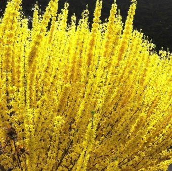 Форзиция промежуточная Spectabilis — Мощный раскидистый кустарник с красивой, симметричной, равномерно разветвленной кроной высотой 150-200см. Кора молодых ветвей светло-коричневая, побеги слегка поникающие. Листья простые, продолговатые, грубозубчатые по краю, темно-зеленые, осенью — светло-желтые, часто — с фиолетовым оттенком. Цветки крупные, до 4 см в диаметре, колокольчатые, ярко-желтые, собраны в пучках по 4-6 шт. Цветет на побегах прошлого года в конце апреля-начале мая, обильно и продолжительно, около 20 дней. Одна из красивейших форм форзиции промежуточной. Используется в одиночных и групповых посадках для создания куртин, опушек, кустарниковых миксбордеров, древесно-кустарниковых групп, сезонных композиций. Замечательный весенний акцент, который в течение сезона, до окрашивания листвы, становится идеальным зеленым фоном для более низкорослых кустарников, хвойных и травянистых растений, расположенных перед ней. Рекомендуется для озеленения городских дворов, различных зон отдыха, детских и спортивных площадок, городских скверов, бульваров и парков.
