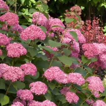 Гортензия древовидная (Hydrangea arborescens Pink annabelle) – новый сорт вида гортензии Annabelle. Считается наиболее выносливым, в отличие от предшественников. Высота 100-120 см. и ширина примерно 70-80 см. Крепкие побеги не прижимаются к земле, несмотря на тяжелые, массивные бутоны.
