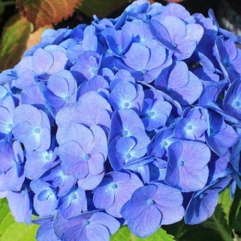Гортензия Forever&Ever® Синяя (blue) Растения высотой 75–90 см. Листья крупные, темно-зеленые. Цветки интенсивной синей окраски, на щелочных почвах становятся розовыми. Соцветия шарообразные диаметром 15-20 см, многочисленные. Цветёт с конца июля до заморозков, на побегах прошлого и текущего года. Соцветия имеют уникальный темно-голубой цвет, который во время цветения уходит в насыщенно-синий и фиолетовый. Окраска цветков сильно зависит от показателя кислотности. Регулирование кислотности почвы помогает получить требуемый цвет. Чтобы растение имело оригинальную синюю окраску, нужно хорошее усвоение алюминия, чего можно добиться лишь на кислых почвах. Этот сорт отличается ранним началом цветения.