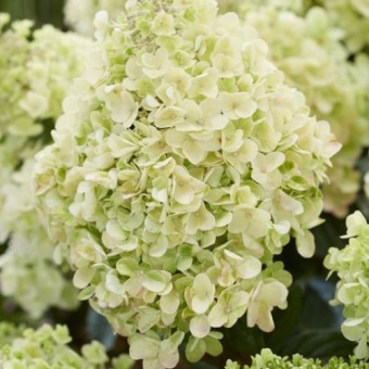 Ароматная гортензия. Куст компактный, много лет остаётся низкорослым, высота 50-60 см, ширина 100 см. Цветки в начале цветения светло-зелёные, затем кремово-белые. Аромат нежный, восхитительный, сладкий. Цветение очень продолжительное, с июня до заморозков. Листья тёмно-зелёные глянцевые. Подходит для выращивания в горшках и в саду. Место солнечное или полутенистое. Почва умеренно влажная, хорошо дренированная. Зона 4 (до -29°С).