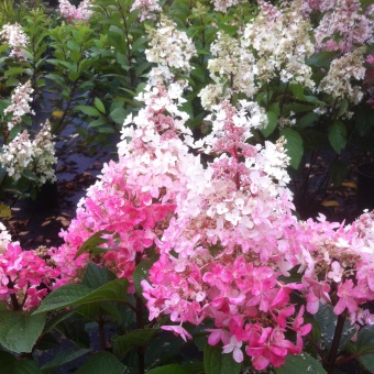 Гортензия метельчатая Pinky Winky — декоративно цветущий кустарник с пышной округлой кроной, достигает до 120-150см в высоту и в диаметр 150-200см. Ежегодный прирост составляет 30 см. Живет до 50 лет. Отличительной особенностью этого сорта являются пурпурная осенняя окраска цветов и листьев, а также очень прочные побеги, которые прекрасно держат очень крупные соцветия. Форма куста широко-округлая, не разваливающаяся. Молодые побеги красновато-бурые, немного опушенные. Листья шершавые, широкие, зеленые, с выраженной красноватой осенней окраской. Цветы собраны в крупные конусовидные соцветия по 15-20 см в длину, двухцветные — сверху белые, ниже пурпурно-розовые. Цветет с июля по сентябрь. Используется в одиночных посадках и контрастных композициях при декорировании цветочных садов, зеленых опушек, также парков и аллей, в качестве живой изгороди.