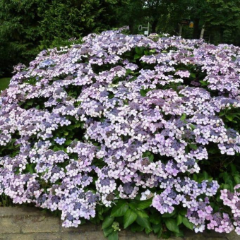 Гортензия пильчатая Rosalba — Компактный кустарник в высоту достигает 60-80, в диаметр 80-100см. Побеги голые или опушенные, листья эллиптические или яйцевидные 5—10см длиной, осенью — красные. Цветки бело-розово-малиновые в плоских или слегка выпуклых щитках, срединные плодущие цветки мельче, фиолетовые или розовые. Цветет в июле-августе, иногда до сентября. В зимы без сильных перепадов температур полностью сохраняет побеги.