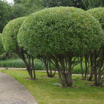 Ива ломкая Bullata-крупный кустарник или небольшое дерево высотой 300-400 см. В молодом возрасте может быть многоствольным кустарником, во взрослом — одно- или многоствольное дерево. Форма кроны шаровидная, сегментарная, похожая на «облака», густая, создается впечатление стриженной. С возрастом крона становится зонтиковидной, округлой. Ветви ломкие, наблюдается веткопад, из-за чего крона внутри пустая, остаются только скелетные ветви, несущие на себе ажурную крону. Сами удаляются веточки на концах побегов, в результате чего крона приобретает правильные очертания. Побеги голые, желто-оливковые, блестящие, почки темные, почти черные. Листья темно-зеленые, удлиненные ланцетные. Цветет одновременно с распусканием листьев. Средний темп роста.