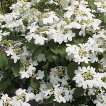 Калина складчатая Watanabe-декоративный кустарник с красивой кроной, формируемой тонкими ветвями. Побеги облиственные, покрыты шероховатыми листьями, меняющими свой цвет в зависимости от времени года. Летом листва ярко-зеленая, осенью становится винно-красной и смотрится невероятно эффектно. Цветение начинается в конце июля или начале августа. В этот период образуется множество мелких белоснежных цветов, собранных в щитковидные соцветия. Из цветов образуются овальные ягоды, ярко-красные в начале созревания и сине-черные при наступлении зрелости. Средняя ширина взрослых кустов 80 сантиметров, высота до 2-х метров.