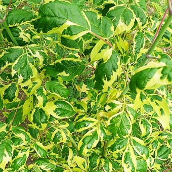 Клен ясенелистный Aureovariegata — в высоту достигает 150-200см, в диаметр 150-200см. Молодые листья яркие золотисто-желтые. Наиболее интенсивная окраска в мае-июне. Если растет на открытом солнце, летом окраска несколько бледнее. Клен «Вариегатум» полностью зимостойкое растение. При подмерзании побегов текущего года, проводить обрезку весной. Абсолютно не прихотливое к условиям посадки. Хорошо растет на всех видах садовых почв. Избегать посадки в местах с избыточной влагой. Клен ясенелистный «Вариегатум»- устойчивое к болезням и вредителям. Хорошо переносит формировочную обрезку. Высаживается во всех уголках сада, как на солнечных местах, так и в затенении, при этом, декоративность листьев не теряется.