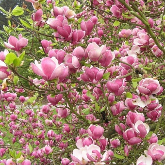 Магнолия Суланжа-листопадный кустарник или небольшое дерево до150-200см (в южных регионах). Листья обратнояйцевидные около 15 см в длину. Цветки крупные, бокаловидные, до 20 см в диаметре, с тонким ароматом. Лепестки от нежно-розовых до пурпурных. Растение устойчиво к влиянию неблагоприятных климатических факторов и хорошо развивается на различных почвах. Цветет обильно до распускания листьев, либо одновременно с их появлением. Предпочитает полутенистые места, защищенные от ветров.
