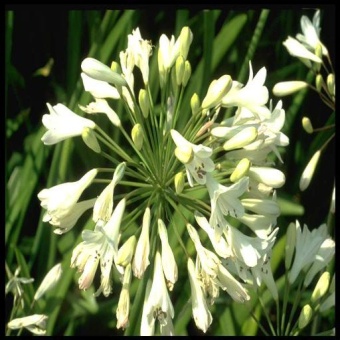 Цветок окрашен в белый цвет. В периоды между цветением, продолжает выпускать новые листья, образуя своего рода объёмный зелёный куст. Растут цветы из макушки цветоноса, каждый на собственном стебельке. Длина каждого цветка в соцветии 3-5 см. Цветет пышно в летнее время.