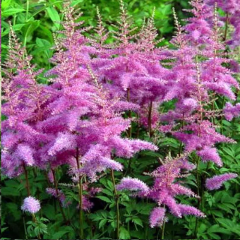 Астильба Арендса Amethyst — популярный и выносливый сорт, обильно цветущий ярко-сиреневыми нежными метелками. Период цветения растения – с июля по август, в зависимости от климата, и длится 20-30 дней. В остальное время декоративность поддерживает блестящая темно-зеленая листва с резными краями. Взрослое растение имеет форму ажурного куста высотой до 1 м. Побеги раскидистые и прямые, окрашены в коричневый оттенок. Молодые растения нуждаются в зимних укрытиях, для сохранения почек на корневой системе. Сорт обладает иммунной защитой от заболеваний и способен расти и цвести много лет без пересадки.