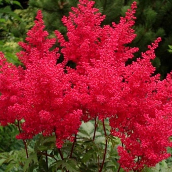 Соцветие крупное, в высоту 22 см, среднее по плотности. Цвет красный, аромат приятный и легкий. Соцветие изящное, смотрится дерзко, броско. Если нужно сделать акцент в том или ином месте на участке, высаживают астильбу этого сорта.