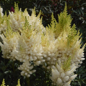 Астильба Арендса Weisse Gloria-одно из самых красивых декоративных многолетних растений. До 90 см. высотой и 70-80 см. шириной. Листья темно-зеленые, блестящие. Цветки кремово-белые, собраны в ромбовидное, плотное соцветие, до 25 см длиной. Период цветения начинается в июле и длится 25 — 30 дней. Растение теневыносливо, но лучше всего растёт и цветёт в полутени или при рассеянном освещении. Может расти и на солнечных местах, но тогда для сохранения декоративности — требуется более частый полив и опрыскивание водой, либо посадка около водоёмов.