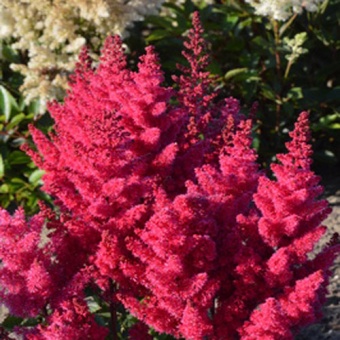 Астильба гибридная Sunny Day-Сортосерия «Day». Цветки тёмно-красные. Цветение в июне-июле. Растение компактное, высотой 50 см;