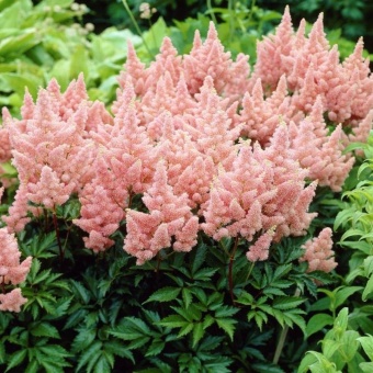 Астильба японская Sister Therese-принадлежит к группе гибридов Арендса (Arendsii Hybrida). Растения этой группы имеют красивую шарообразную или пирамидальную форму куста. Их хорошо высаживать в кружевной тени. Цветение длительное – до 40 дней. Высота растения до 60 см. Цветки нежно-розовые, соцветие плотное, пушистое, ромбическое. Цветение в июле – августе. В начале сезона листья темно-зеленые, впоследствии светлеют. Почва плодородная, влажная, хорошо дренированная. Местоположение – полутень. Морозостойкость высокая. Применяется в групповых и одиночных посадках на газонах, цветниках.