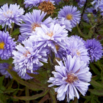 Астра ново-бельгийская Marie Ballard — вырастают в пышные кусты высотой до 80-90 сантиметров. В сентябре макушки стеблей украшаются многочисленными махровыми цветками, диаметром 3 сантиметров. Узкие лепестки окрашены в синий цвет, отливающий на солнце лиловым оттенком. Цветение длится более 5 недель. Для сохранения декоративности, срезайте увядающие бутоны с куста. Астра новобельгийская неприхотлива к типам почв и хорошо растет не только на солнце, но и в полутени. Благоприятно ее сочетание в цветнике с астильбой, спиреями, хризантемами, хостой и даже хвойниками: туей, можжевельником.