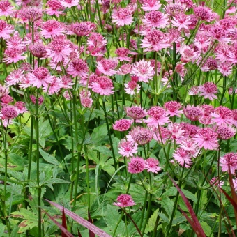 Астранция большая Rosensinfonie прекрасно подходит для срезки и сухих букетов. Цветки мелкие розового цвета (до 4 см в диаметре). Цветение обильное и длительное: с июля по сентябрь. Астранция – замечательный многолетник с необычными соцветиями, обильно цветущий в саду в течение длительного периода. При своевременном удалении отцветших стеблей астранция радует эффектным цветением и в начале осени. Многолетнее, травянистое растение, которое имеет прямостоячие и достаточно крепкие побеги. Высота взрослого растения (куста) составляет около 80-100 см, а ширина около 50 см.