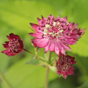 Астранция большая Ruby Cloud растет на любом плодородном, хорошо дренированном и умеренно увлажненном грунте. Многолетник достигает около 60-80 см в высоту. Стебли маловетвистые, прямостоячие, окружены красивыми прикорневыми, округлыми, пальчато-лопасными листьями, зеленого цвета. Цветки мелкие, рубинового цвета, собраны в крупные соцветия, которые напоминают один большой цветок. Цветение длительное, с июля по сентябрь. Астранция большая Ruby Cloud засухоустойчивый и стойкий к болезням сорт. Также хорошо переносит и небольшие заморозки.