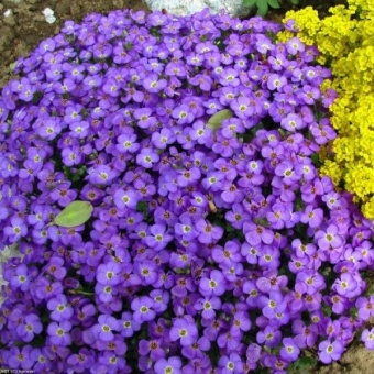 Audrey’ — Это первый гибридный сорт обриеты. Он выделяется ранним цветением и декоративностью. Благодаря хорошей зимостойкости растение можно сажать в открытый грунт Куст вырастает до 15 см в высоту.