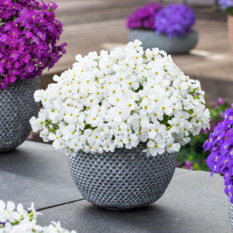 Аубриета Florado White – это типичный почвопокровник, отлично приспособленный для жизни в горной местности. Невысокие, стелящиеся по земле кусты густо покрыты кистевидными соцветиями из мелких четырёхлепестковых цветочков белых. Форма листьев также может быть самой разной: ланцетовидной, лопатчатой или эллиптической. Цветение Аубриеты продолжается с мая по июнь.. Поскольку обриета не сбрасывает на зиму листья, свои декоративные свойства она сохраняет круглый год. При этом растение имеет необычную особенность: если летом листва имеет сизоватый цвет, то зимой она становится изумрудно-зелёной.