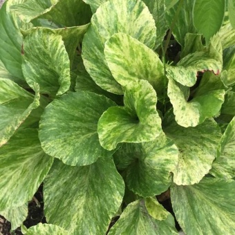 Относительно крупным, декоративным листьям пестрой окраски – лист зеленого цвета с желтоватой каймой, которая к осени сменит цвет на красновато-коричневый.