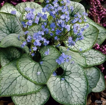 Бруннера крупнолистная Jack Fros tшироко применяются ландшафтными дизайнерами для высадки в альпинарий и в теневой смешанный цветник. У бруннеры вид небольшого раскидистого кустика, достигающего высоты 40 см. Сажать цветок лучше в полутени, в полной тени он теряет свою декоративность.