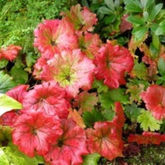 Дармера щитовидная — очень крупное и экзотическое растение семейства Камнеломковые. Подходит для теневого сада, формирует эффектные куртины из крупных листьев, отходящих от мощного, толстого корневища, расположенного у самой поверхности почвы. Хорошо смотрится под кронами взрослых деревьев. Высотой 70-90 см, листья крупные, почти круглые, темно-зеленые, с волнистым краем и рельефными жилками, осенью листья окрашиваются в бронзово-красный цвет. Листья данного растения появляются после цветения. Цветки розоватые, мелкие, собраны в зонтиковидные соцветия. Цветет в апреле-мае до распускания листьев.