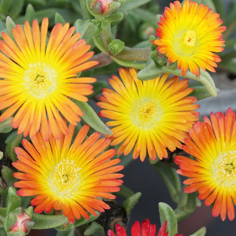 Саженцы Делоспермы Купера Сантропик Купер (Suntoric Copper) представляют собой низкорослый кустарниковый суккулент высотой не более 15 сантиметров. Его высаживают на альпийских горках, в рокариях, в качестве бордюрного растения. В мае и июне среди узкой, мясистой, ярко-зеленой листвы появляются яркие цветочки, похожие на миниатюрные астры. Сантропик Купер образует плотную подушкообразную куртину до 60 сантиметров в поперечнике. Цветки многочисленные, простой формы, с узкими лепестками с желтым основанием и оранжевыми кончиками. Растение неприхотливо, но на зиму нуждается в укрытии.