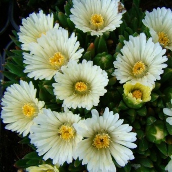 Саженцы делоспермы скрученной Альба (Alba) пользуются огромной популярностью у любителей альпийских горок и рокариев, так как они идеально подходят для украшения этих садовых объектов. Компактное растение неприхотливо в уходе и обладает устойчивостью к засухе, но, чтобы создать для него подходящие условия, необходимо перед посадкой организовать хороший дренаж. В начале лета среди сочной зеленой листвы распускаются многочисленные цветы с белыми лепестками. Цветение длится до наступления осенних заморозков, в это же время листва меняет цвет и становится темно-бордовой.