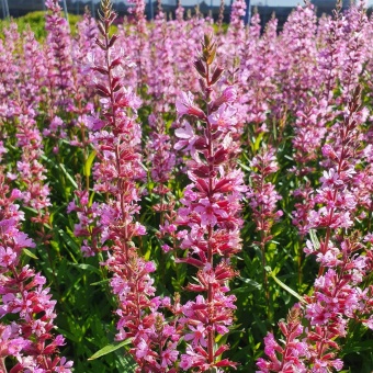 Дербенник иволистный Pink Tails — неприхотливый многолетник высотой до 90 см. Образует крупные куртины из стройных стеблей. Нежно-розовые цветки собраны в свечевидные элегантные соцветия. Имеет зеленее листья, которые осенью становятся красными. Цветет в июне-августе. Любим пчёлами и бабочками. Предпочитает солнечное или слегка затенённое место и увлажнённую, богатую питательными веществами почву. Зимует без укрытия. Практически не болеет. Прекрасно смотрится на заднем плане цветника, в миксбордерах в тенистых местах, около пруда.