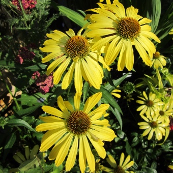 Эхинацея Cleopatra (Клеопатра). Многолетнее травянистое растение высотой 80-100 см. Отличается крупными эффектными цветками. Листья овально-узкие, опушенные, зубчатые, с прожилками, зеленого цвета, иногда с пурпурным оттенком у основания. Цветы до 12 см в диаметре с лучевым расположением лепестков и шишковидной выступающей «щетинистой» сердцевиной появляются на пряморастущих жестких стебля