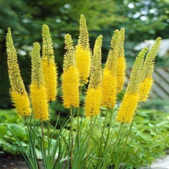 Эремурус бунге «Е. bungei» — имеет жёлто-золотые соцветия после увядания меняют цвет – бурый. Растение растёт не только на солнечных площадках, но и в небольшой тени. Высокие грунтовые воды для него нежелательны. Любит щелочные, нейтральные, дренированные почвы. Срезанные цветы долго остаются в первозданном облике. Можно использовать как сухоцветы для различных композиций.В ландшафтном дизайне высаживают на задний план для миксбордеров, цветников.