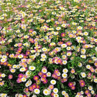 Эригерон Карвинского Bluetenmeer «ERIGERON» — в высоту достигает не более 70,окраска цветка розово-белая,цветет — Июнь-август