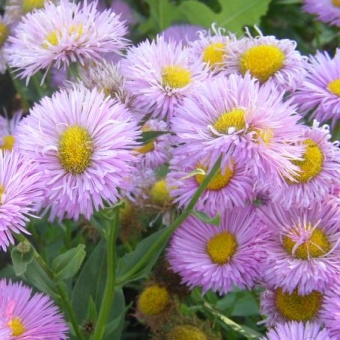 Эригерон красивый «Azure Beauty» — эффектный привлекательный обильноцветущий многолетник. Цветки представляют собой ярко-желтые корзинки, окаймленные мелкими лепестками в три ряда, создают пышный сиренево-фиолетовый объем. Предпочитает плодородные, умеренно влажные почвы, хорошо растет на солнечных местах и в полутени. Зимостоек. После цветения стебли обрезают.