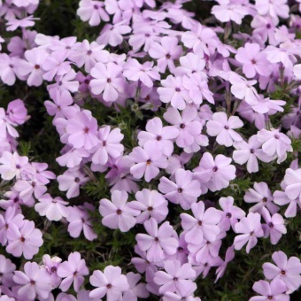 Флокс Lilac Cloud (Лайлак Клауд)/ Листочки шиловидные мелкие, располагаются близко друг к другу, поскольку междоузлия очень короткие. Цветки диаметром около 2,5 см собраны по 5-7 шт. в небольшие соцветия, иногда одиночные. Образует плотные густые подушки диаметром около 30 см, но разрастается медленно. Цветки маленькие на коротких цветоножках. Цветение дружное и яркое.