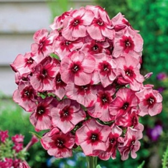 Многолетняя культура семейства синюховых представляет собой высокорослое растение, которое вырастает до 70-80 см. Для данного вида характерны прямостоячие крепкие стебли, умеренная облиственность ланцетовидной листвой травянисто-зеленого окраса с выраженным глянцем, способность быстро разрастаться, а также плотные соцветия округло-конической формы. Внешне кустарник выглядит достаточно компактно и упруго. На одном месте культура может произрастать 4-5 лет.
