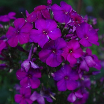 Куст гармоничный, компактный, с хорошими показателями разрастания. Это среднерослое растение, способное вырасти до 80 см. В диаметре куст достигает 70 см. У него густая облиственность, листики – овальные, ланцетные, темно-зеленые. Форма соцветия – широкопирамидальная, размер соцветия очень большой, до 35 см. По плотности оно рыхлое. Каждый цветок в диаметре примерно 3 см, по цвету – насыщенный темно-фиолетовый. Это немахровые цветки, обладающие сильным ароматом.