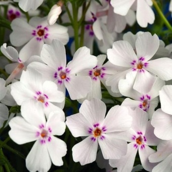 Флокс сорта Amazing Grace (Амазинг Грэйc) отличается белыми цветками с пурпурной сердцевиной. Растение образует ковер на участке, так как быстро разрастается и обладает лежачими стеблями и сидящими мелкими листочками. После завершения периода цветения рекомендуется уменьшить толщину дернинки на 5 см или чуть больше. Такой подход помогает предотвратить оголение. На концах стеблей формируются цветоносы, на который распускаются цветы до 2,5 см в диаметре. Они собраны в соцветия по несколько штук, редко бывают одиночными. Данный сорт флокса лучше сажать на рыхлую и водопроницаемую почву с умеренной влажностью. В грунт перед посадкой добавляется песок или мелкозернистый гравий. Кислотность должна быть нейтральной, на слишком плодородной почве цветение необильное.