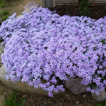Флокс шиловидный Benita «phlox subulata Benita» — цветет сиреневыми цветками с глазом . Образует вечнозелёные ковры. Разрастается хорошо. После цветения желательно сократить толщину дернинки на 5-8 см. Это позволит избежать израстания и оголения.
