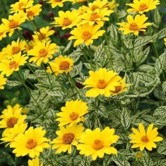 Гелиопсис подсолнечниковидный Loraine Sunshine позволяют вырастить эффектное растение высотой до 70 сантиметров с роскошными широкими листьями, светло-зеленая поверхность которых украшена темными прожилками. Этот сорт красиво смотрится в одиночных посадках и смешанных композициях. В июле гелиопсис подсолнечниковидный Loraine Sunshine начинает цвести. В это время распускаются небольшие цветы с желтыми лепестками. Цветение длится до наступления осенних заморозков. Для посадки растения можно выбирать хорошо освещенные участки или легкую полутень.