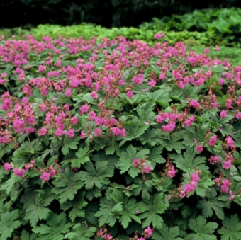 Почвопокровная герань, с годами разрастается вширь до 120 см. Цветки яркие пурпурно-красные. Цветение в июне-июле. Листья глубоко-лопастные, светло-зелёные, ароматные, осенью краснеют. Высота 20-30 см. Место солнечное или полутенистое. Почва дренированная.