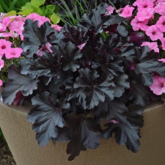 Высокие лиственные декоративные свойства и нетребовательность к условиям позволяют использовать гейхеру Блэк Перл в практически любых местах. Отлично это растение подходит для бордюров, вазонов и кашпо.