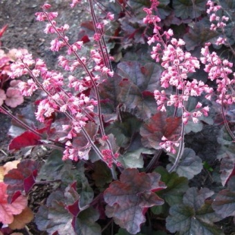 Листья многолетника матовые, имеют бронзово-пурпурную окраску, среднего размера. Цветки у гейхеры Кассис ярко-розовые, почти вишневые, колокольчатой формы, собраны в пышные метелки. Цветоносы возвышаются над основным растением на 15-20 см. Всего прямостоячие цветоносы вырастают 30 — 50 см. Цветет в июне-июле.