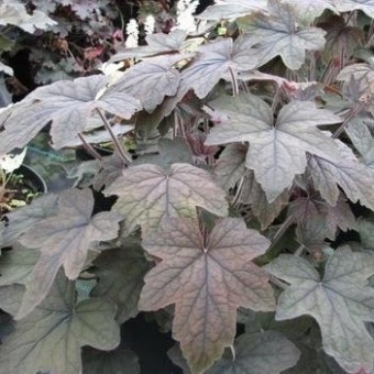 У гейхеры Арт Деко листья красивые, матовые пятиконечной формы, с темными прожилками. Летняя окраска листвы- абрикосово-коричневая, ближе к осени — шоколадного цвета. Цветки мелкие, белые, на длинных темных цветоносах высотой соцветий до 35 см. Цветет с июнь по август.