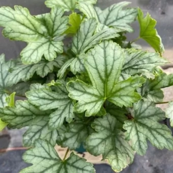 Гейхерелла «White Revolution» — эффектный обильноцветущий сорт. Растение достигает до 20 см в высоту. Цветоносы могут достигать в высоту 45 см. Цветёт с мая по август. Листья крупные, рассеченные, зелено-серебристые с пурпурно-розовыми прожилками. Цветоносы многочисленные, длинные. Цветки белые, собраны в колосовидные соцветия.